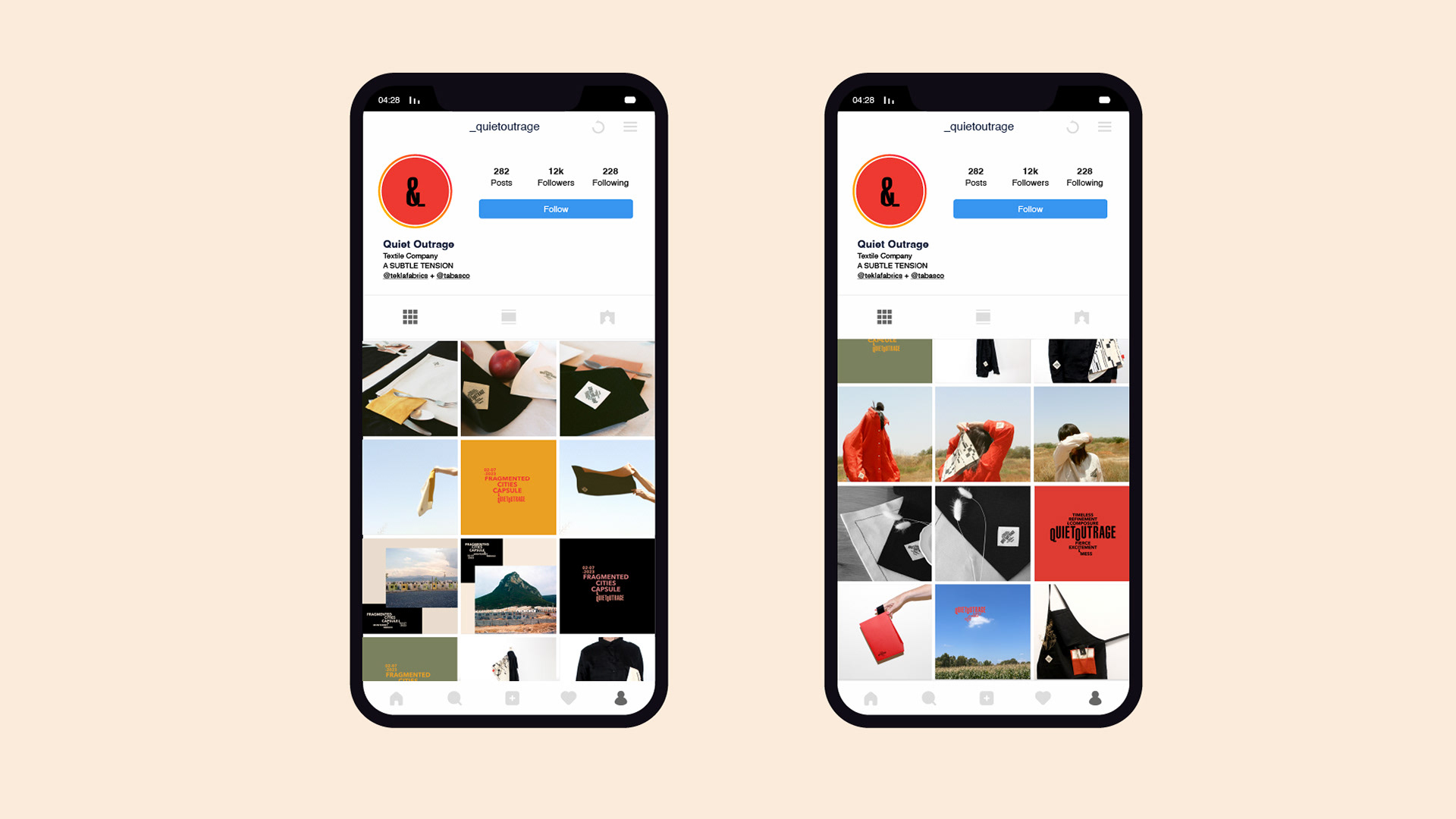 As part of Tabasco X Tekla Fabrics collaboration, Quiet Outrage is a kitchen textile brand. The brand identity is based on the tension between the two brands- timeless refinement and composure & fierce excitement and mess.